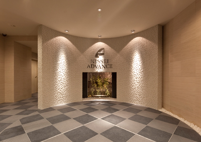 堂島川と土佐堀川に囲まれた中之島は大手企業の巨大ビルディングが立ち並び、日本銀行・国際会議場・国立美術館・中央公会堂など日本の文化・経済その中枢を担う建物が数多く存在します。私鉄新線と4ヶ所の新駅が完成し、今後ますます発展が予想される中之島を目前にとらえた立地条件で本物件は建築されました。外観デザインはシンメトリーを機軸に整ったバランスと厚みある安定感を随所に表現。低層部の外壁仕上げに非焼成セラミック材を用いることで正面ファザードを引き締め、中層部から上層部にかけては左右対称のフォルムを象徴づけたディテールが印象的です。